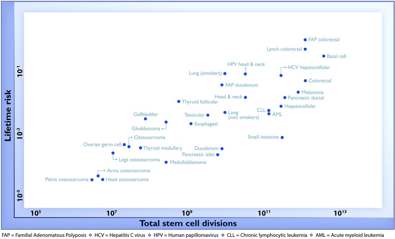 줄기세포의 분열 수를 통해 조직간 암발병률의 차이 설명