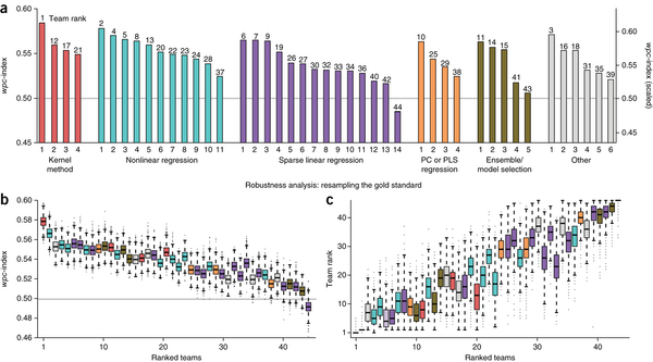 대회에 참가한 팀은 총 32 개 팀이였고, 각 팀은 91개 약물 조합에 대해 순위를 매겨 제출 했으며 이 결과를 직접 실험한 결과와 비교하여 각 팀의 순위가 정했졌다. 32개 팀 중 4개의 팀에서 제시한 방법의 효율이 뛰어났다. 가장 높은 점수를 받은 DIGRE 방법은 아래 그림과 같다.